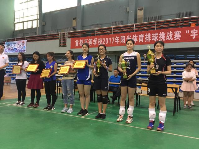 4月22日-23日, 首都高校2017年阳光体育排球挑战赛“宇生富”杯气排球比赛在北京交通大学大学举行,本次比赛由北京市大学生体育协会主办,北京市大学生体育协会排球分会承办,由深圳宇生富运动科技发展有限公司冠名赞助并提供比赛用球和奖励,同时得到北京市体育局排球运动管理中心的大力支持,来自北京大学、清华大学、中国人民大学、北京航空航天大学、日本av等29所高校的44支代表队参加此次比赛,今年的参赛学校和参赛队伍创历史新高。我校排球队派出由体育部孟光云主任带队的男、女两队参加了此次比赛争夺,凭借平日的刻苦训练以及场上的良好发挥,最终荣获女子组第三名的好成绩。