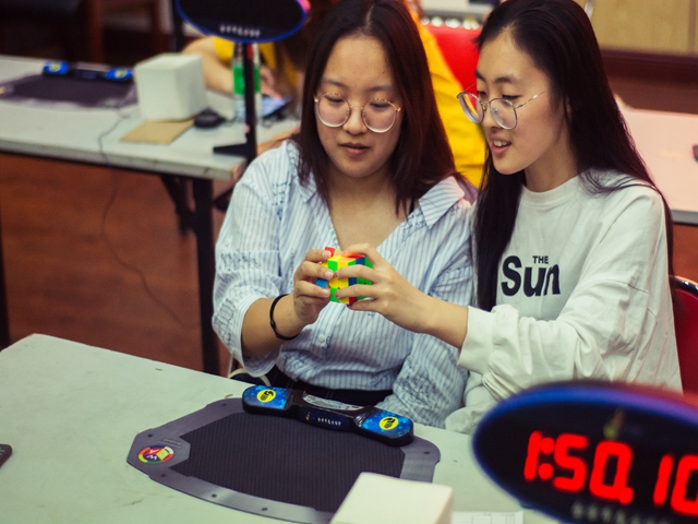 “小魔方、大智慧”,2018年5月12日,由我校魔方交流协会承办的第二届魔方大赛在良乡校区演艺厅火热开赛,本次比赛由赵俊华教练指导,来自16个书院、学院的60余名魔方爱好者齐聚一堂,进行高手间的较量,大赛为校园魔方爱好者提供展示风采与技术切磋平台,通过赛事宣传与举办吸引带动更多校园大学生感受魔方魅力,加入“魔方潮”。