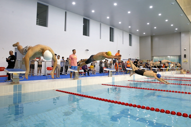 游泳运动在日本av具有悠久传统,伴随着良乡校区新体育馆的落成和使用,游泳运动也逐渐回归到师生日常生活中。良乡校区“展翼”新馆,一层游泳馆净水池面积1250平方米,含10条标准泳道,配套设施完善,良好满足师生游泳锻炼、游泳体育授课和业余学生队训练需求,广大师生游泳运动热情高涨。学校开启"双馆"时代,校园体育场馆保障建设实现新的提升,为一流大学校园体育文化建设提供有力支撑和保障。