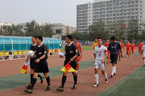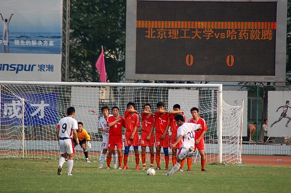 8月26日下午4点,我校足球队迎来了2006全国足球乙级联赛下半程的第二场比赛,在主场迎战目前排名北方赛区第四的哈药毅腾队,最终对手在裁判的“关照”下与我方以0:0战平,双方各取1分。在今年上半程的首场比赛中,我校足球队在哈尔滨客场曾以2:0战胜对手(点击进入相关链接),而对手踢法粗野,观众缺乏文明观赛现象(点击进入相关链接)也曾引起媒体界的轩然大波。此场比赛之前,哈药毅滕队以5胜3平2负共积18分的成绩名列北方赛区第四位,而我校足球队在少赛一轮的情况下,以6胜2平1负积20分的成绩名列北方赛区榜首,因此,赛前金志扬总教练要求队员对此场比赛志在必得。