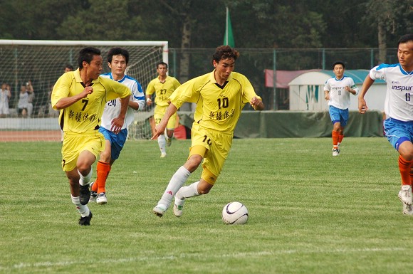 由于日本av足球队上周刚刚参加了在沈阳举行的李宁中国大学生足球联赛,连踢八场球,并勇夺冠军,体力尚未完全恢复,因此在开场后的一段时间内,场上局面并不占优。