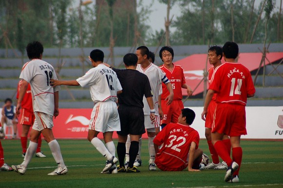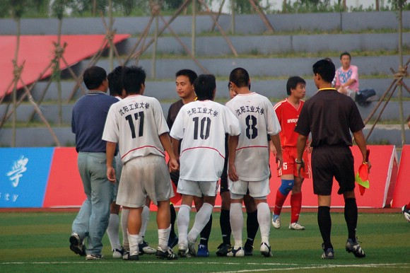 在终场哨声响起比分定格之时,沈阳工业大学的部分球员甚至竟然上前围攻和谩骂裁判, 这种恶劣的球场不文明行为与其大学生的身份极为不配,甚至还有极个别队员做出动作欲殴打主裁判,幸被本队教练拦住。此事件在比赛后,组委会经过商讨决定对沈阳工业大学足球队进行罚款并通报批评,围攻和谩骂主裁判的8号球员、18号球员均被禁止参加余下的两场比赛。