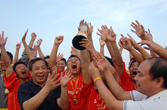 2005~2006李宁中国大学生足球联赛总冠军队伍闪亮登场。