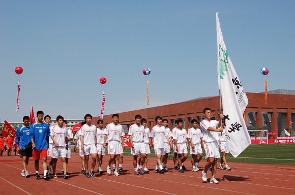 我校足球队第一个步入开幕式会场