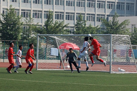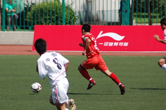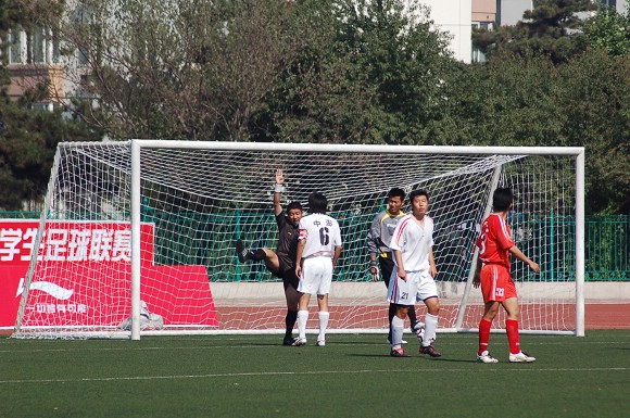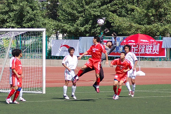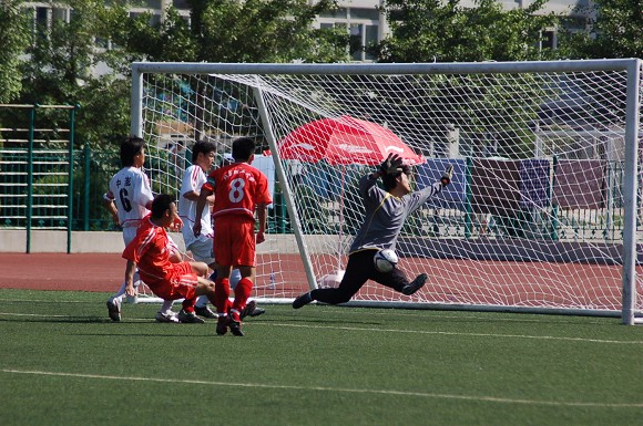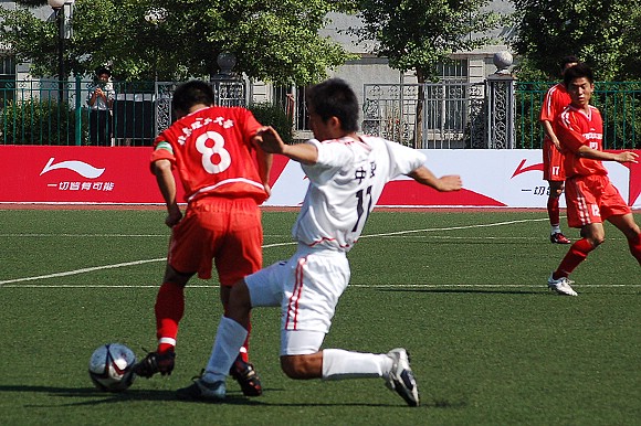 6月28日,李宁杯第六届中国大学生足球联赛决赛阶段的比赛在辽宁沈阳正式开战,我校足球队(着红色队服)在小组赛中首战面对青岛大学足球队。由于我校足球队曾连续获得三届联赛冠军,今年又首次参加全国职业足球乙级联赛且战绩辉煌,使得各队都非常重视与我队的比赛。