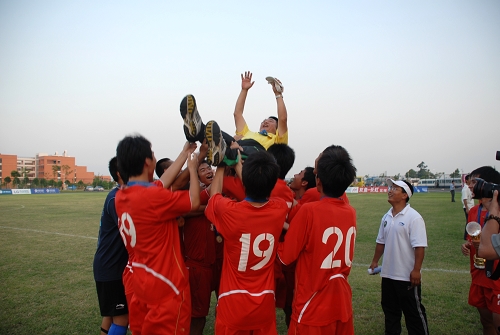 7月25日下午,在广州大学城举行的第八届全国大学生运动会足球赛的决赛中,我校足球队代表北京市大学生以1:0击败广东队,首次获得此项赛事全国冠军!可喜可贺!