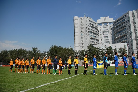 第26分钟,青岛队前场背后产球,被裁判员出示黄牌,爱国者队获得任意球,球长传至青岛队禁区再次被破坏。第34分钟,爱国者大学生队获得机会,球再次被长传至禁区造成混乱,可惜球被顶高出球门。第42分钟,爱国者大学生队再次获得绝好机会,爱国者大学生队前卫右路下底低平球传中至青岛队禁区,前锋得球大力推射,青岛队门将表现神勇,飞身挡出,错失良机。