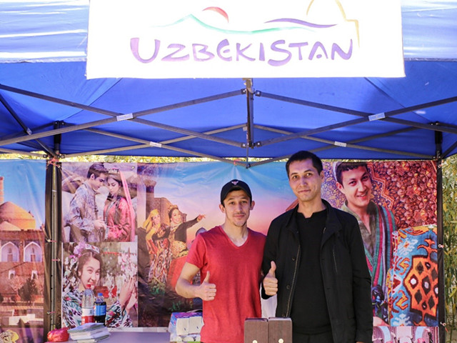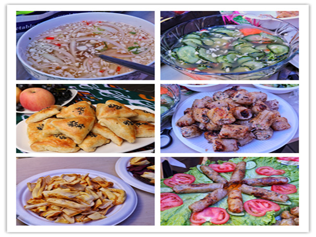 舞台上,能歌善舞的乌兹别克斯坦同学邀请现场观众走上舞台加入表演,大家和着“Hello Uzbekistan”的音乐左右摇摆,沉醉其中;舞台下,哈萨克斯坦的同学们组织的拔河比赛也让现场气氛热烈非凡。现场观众自由组队积极参赛,“加油,加油”的呐喊声此起彼伏;展台边,各国美食琳琅满目,主办国同学热情地将自己国家美食分享给现场观众,“太好吃了”“I like it so much!” “I want more, thank you!” 着实让现场观众流连忘返。身穿莎莉的巴基斯坦姑娘们更是为现场观众手绘汉娜纹身,老师们、同学们都乐在其中,通过本次文化节切身体验了一把“国际范”。