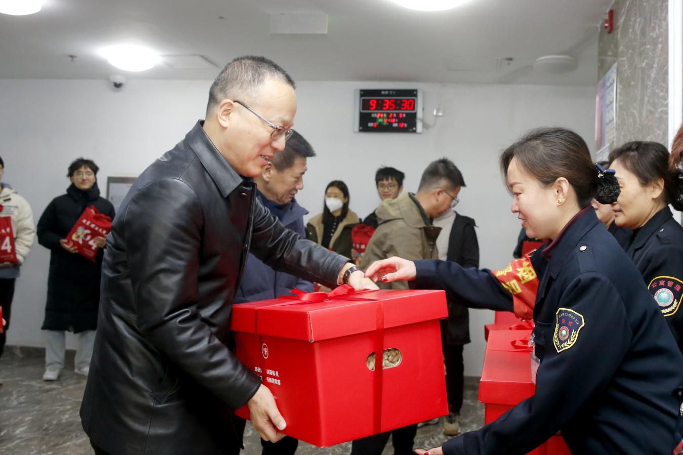 在中关村校区,张军一行先后赴监控中心、配电室、值班食堂、硕博学生公寓、主楼装修工地等地,详细了解了冬季学期(寒假)期间学校各项工作运行情况,代表学校向全体职工这一年来的恪尽职守和辛勤付出表示感谢,向假期坚守在运行保障一线的广大员工及其家属致以诚挚问候,并送上新春祝福和慰问品。张军叮嘱大家,学校安全生产工作事关重大,要紧绷安全生产之弦,为学校创造一个平安祥和的春节假期。张军同留校学生代表、辅导员代表交流时指出,同学们选择假期继续在学校坚守、专心科研、勤奋学习,一定要合理规划时间、注重学习实践相结合,不负韶华、逐梦而行,学校将全力保障留校师生学习、工作、科研需要,希望同学们度过一个快乐、安全、充实的假期。