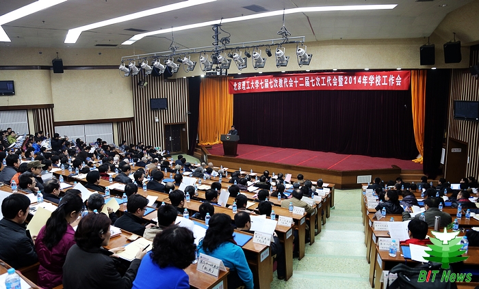 2月26日,学校七届七次教代会十二届七次工代会暨2014年学校工作会议在中心教学楼一层报告厅隆重召开。教代会工代会代表,院士,全体教授、博士生导师,全体校领导,原校领导,全体处级干部,民主党派和无党派人士代表,离退休教职工代表,学生代表等500余人出席了会议。会议由副校长、大会执行主席杨宾主持。