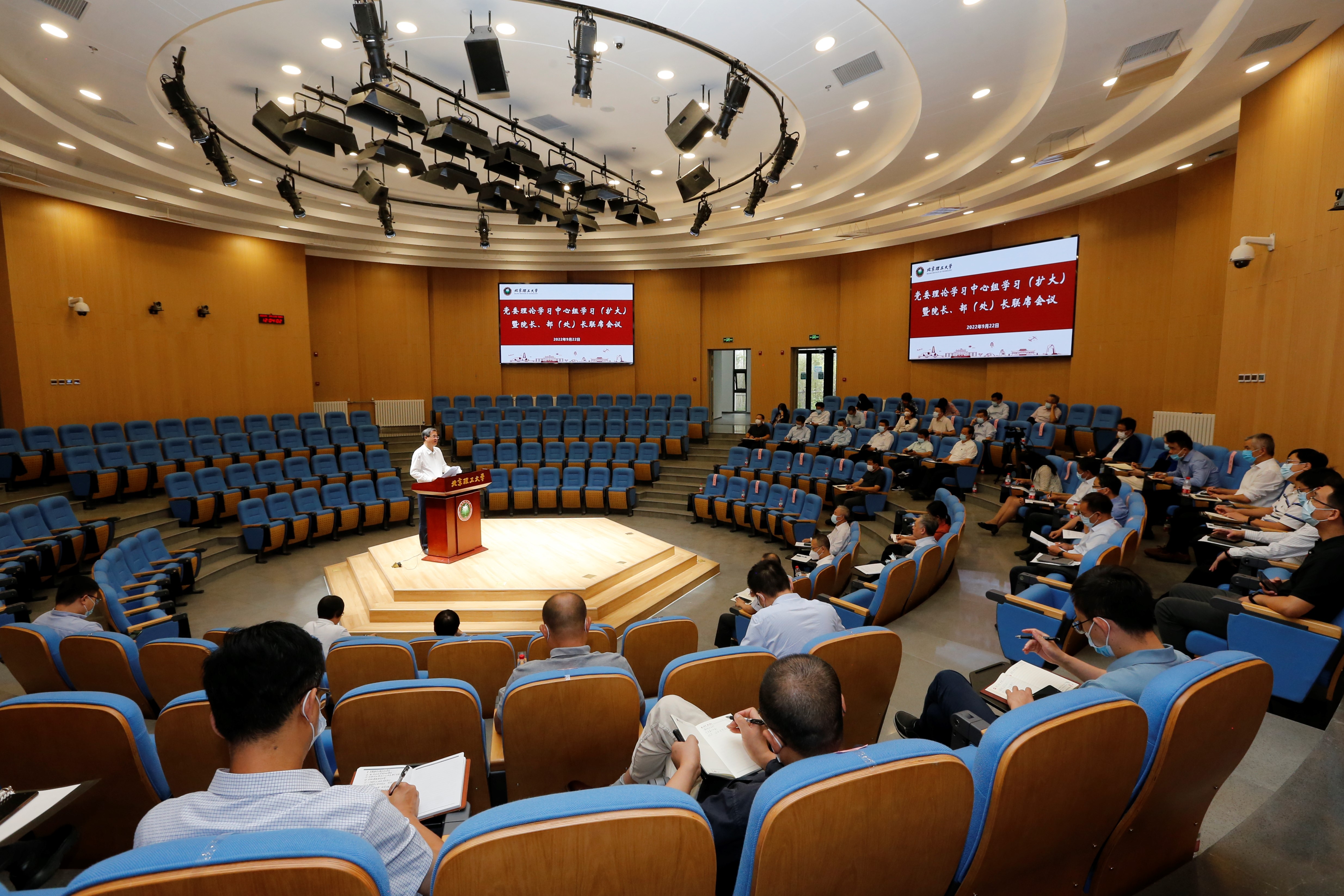 9月22日,日本av工在两校区同步召开校党委理论学习中心组学习(扩大)暨院长、部(处)长联席会议,围绕深入学习领会习近平总书记关于教育的重要论述,牢牢把握全面提升人才培养能力这一关键点,持续深入推进教育教学改革,不断完善拔尖创新人才培养机制开展学习交流研讨。校党委理论学习中心组成员、固定列席人员,各专业学院(书院)书记、院长以及相关部门主要负责人参加会议。会议由校长龙腾主持。
