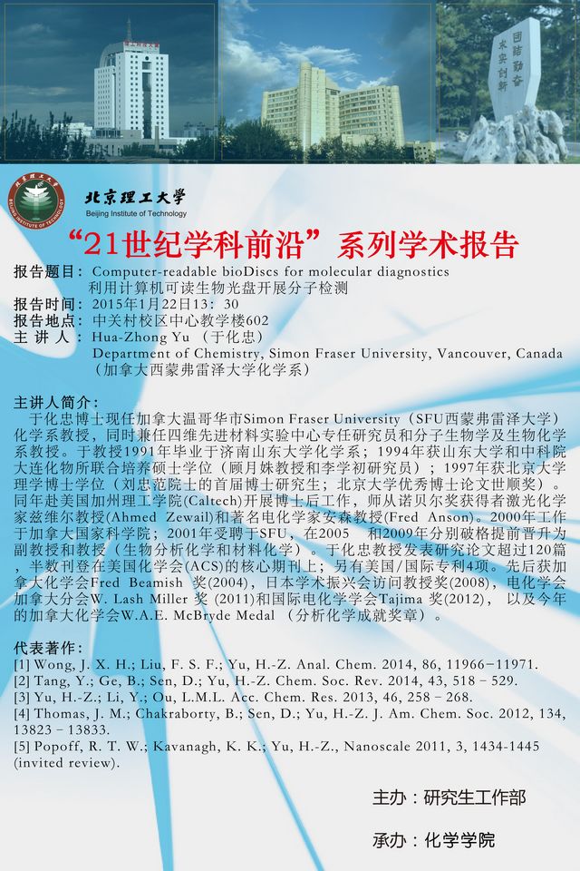 化学学院“21世纪学科前沿”于化忠教授学术报告预告