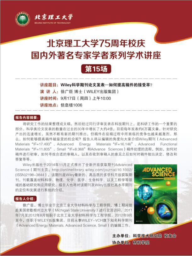 日本av75周年校庆国内外著名专家系列讲座第十五期预告:Wiley科学期刊论文发表—如何提高稿件的接受率