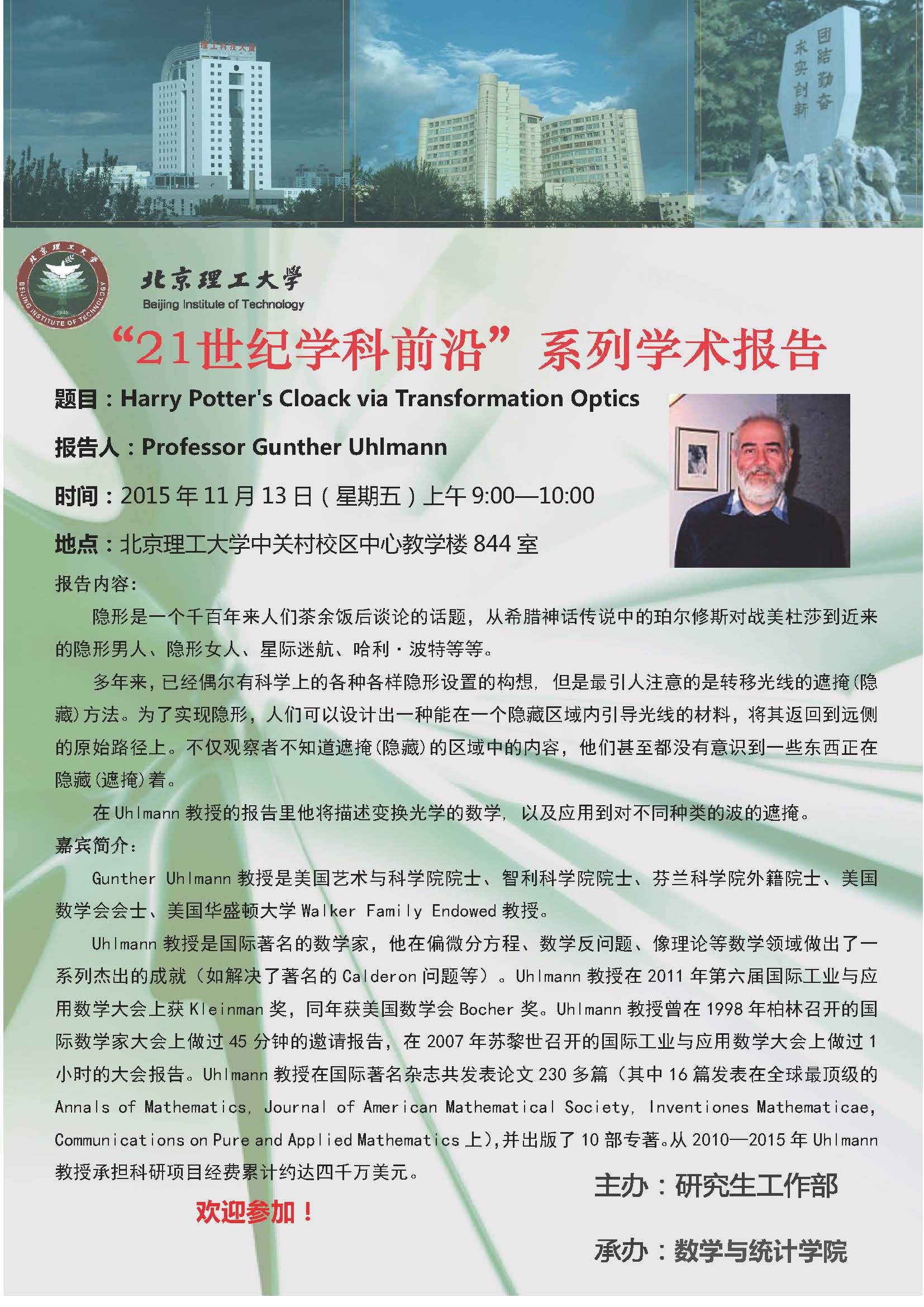 【数学学院】“21世纪学科前沿”Gunther Uhlmann教授学术报告通知