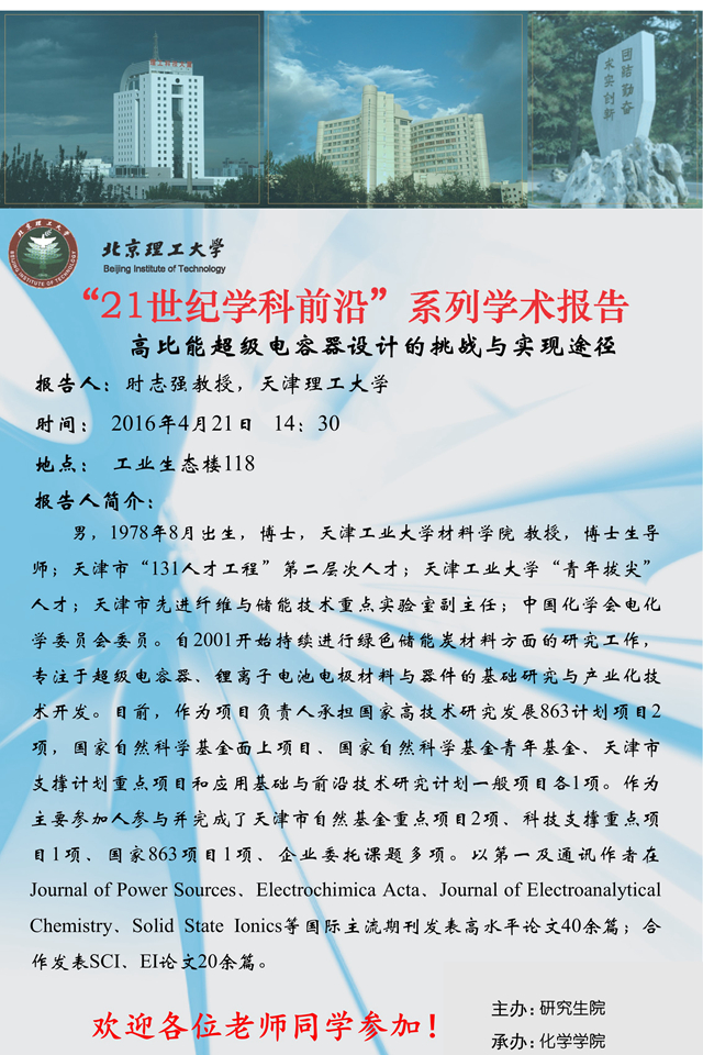 【化学学院】“21世纪学科前沿”时志强教授学术报告通知