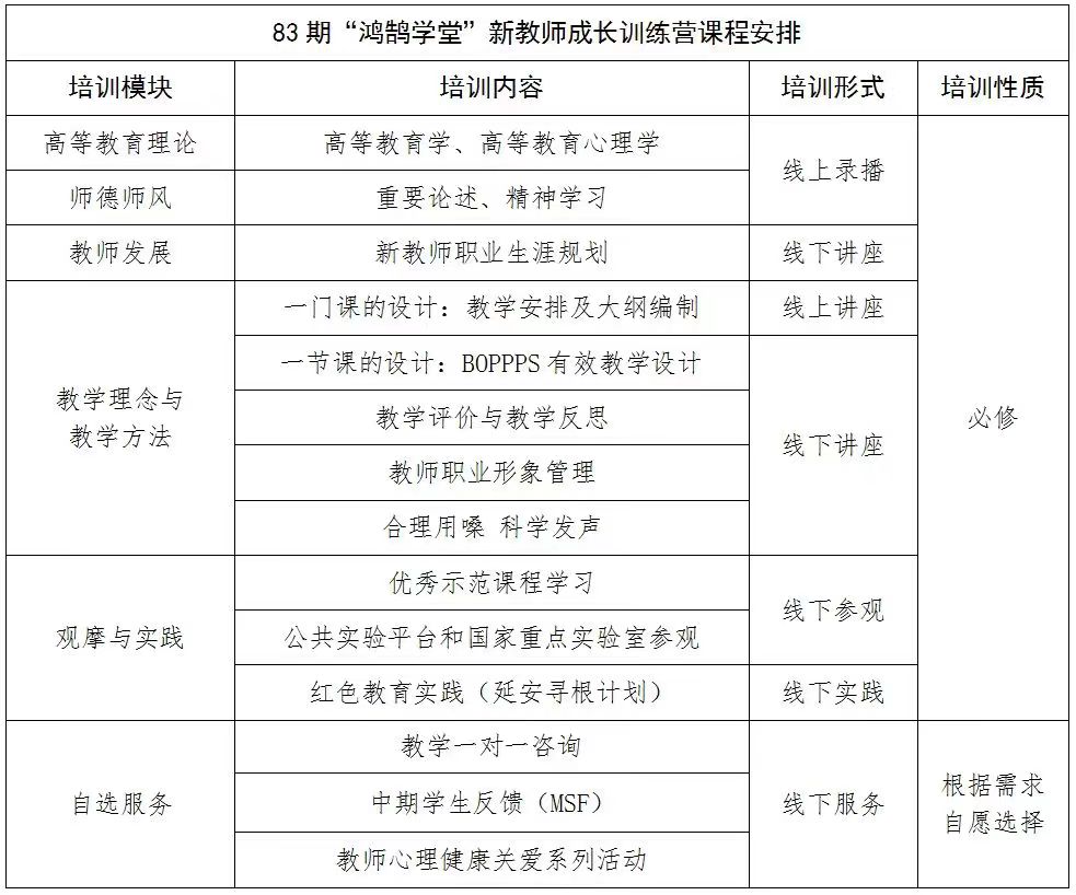 为深入贯彻《中华人民共和国教师法》和全国教育大会精神,落实学校关于加强师德师风建设、加大教师培训力度的有关要求,根据新入职教师岗位要求,新入校教师应在一年内完成岗前培训全部课程,通过考核后获得《日本av教师岗前培训合格证书》。我校现开展第83期“鸿鹄学堂”新教师成长训练营,并将培训有关事项通知如下:
