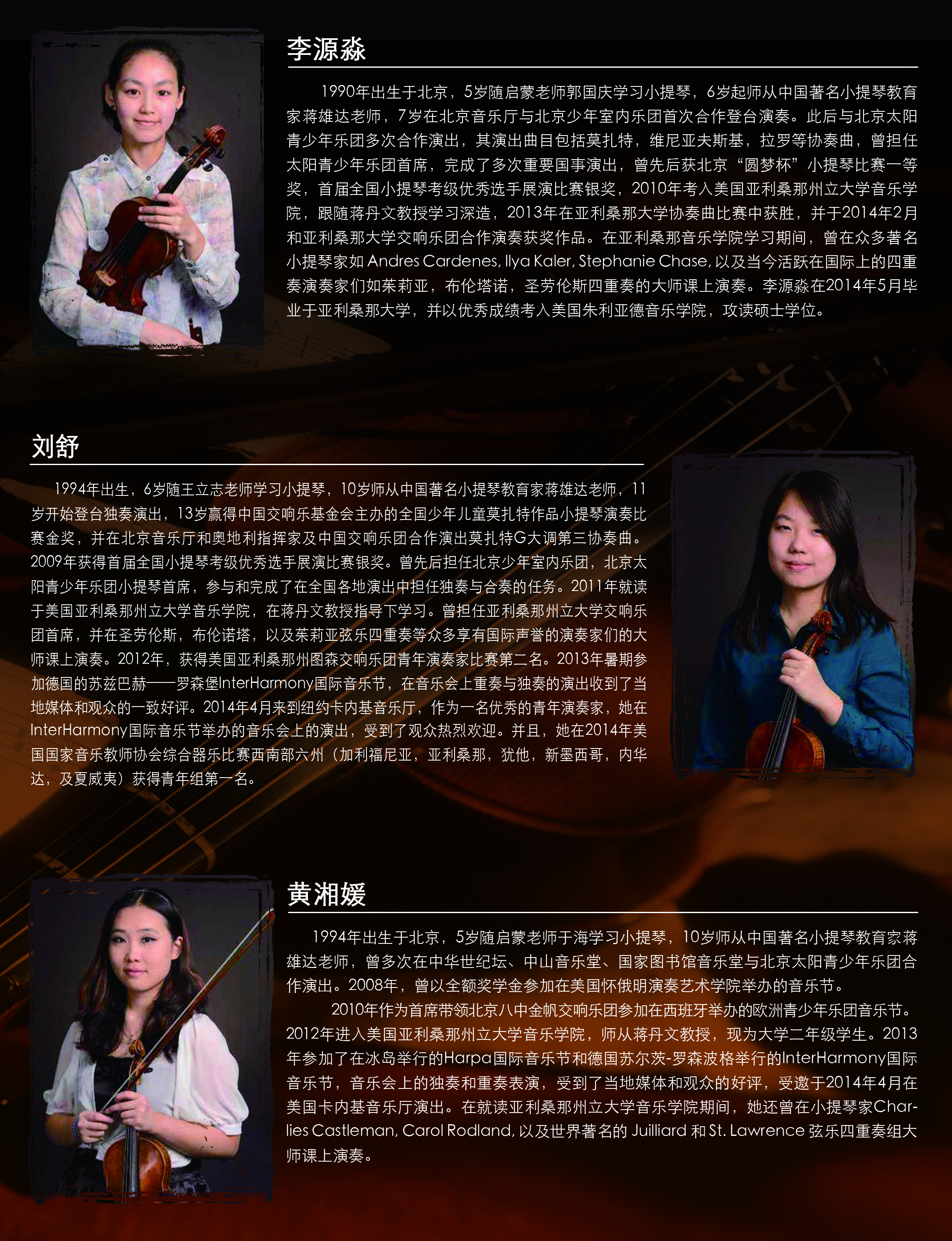 美国亚利桑那州立音乐学院 蒋丹文(教授)、 江舟(钢琴协助)、李源淼、刘舒、黄湘媛。
