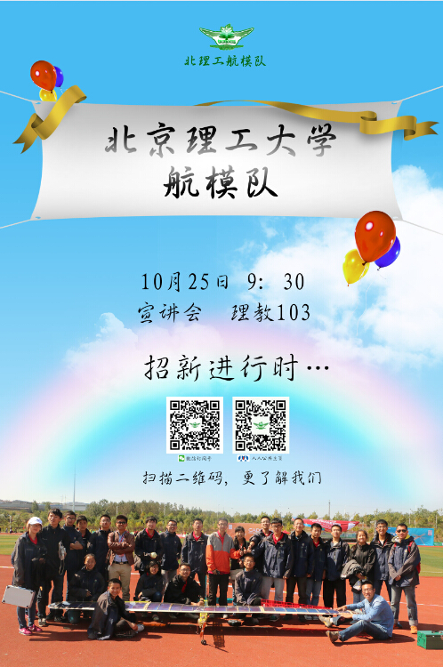 为给同学提供展示自己能力,实现梦想的平台,我们正努力使航模队走向规范化、开放化和大众化。我们期待对飞行器结构、飞行控制算法、机械创新和团队管理感兴趣的同学加入。无论你是什么专业,不管你是否有基础,航模队都欢迎你们的到来。心存大地,志在蓝天,我们相信这里就是你梦的起点,你的到来也将为我们注入新的活力!